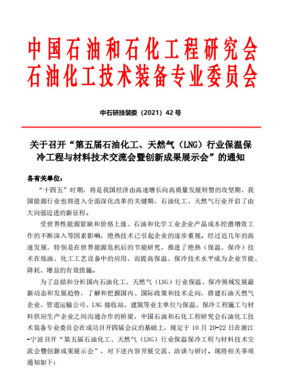 大會將邀請中石油、中石化、中海油、中化集團(tuán)、神華集團(tuán)、國家管網(wǎng)集團(tuán)等單位相關(guān)領(lǐng)導(dǎo)出席大會并做重點發(fā)言,作為參會代表,科好特公司將與來自國內(nèi)外保溫保冷材料上下游一百多位杰出的企業(yè)家、學(xué)術(shù)界翹楚等,就石化、天然氣保溫、保冷、腐蝕與防護(hù)等問題進(jìn)行交流,共同展望新趨勢,探索新機遇。