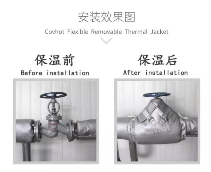 相比之下,可拆卸柔性保溫產(chǎn)品(如科好特科技研發(fā)的“COVHOT®”系列)在需要頻繁檢修的部位優(yōu)勢顯著。其靈活拆裝、重復使用的特性,可大幅降低維護成本,尤其適用于閥門、三通、過濾器等需定期檢修的部件。此外,柔性保溫材料還能適應復雜形狀的設備,提供更精準的隔熱、防凍及防火保護,滿足工廠個性化需求。